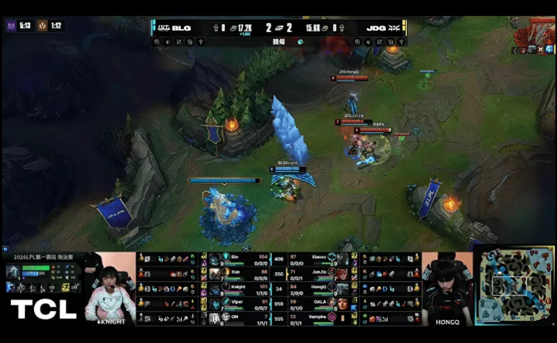 6分钟,JDG拿下小龙,但辅助阵亡