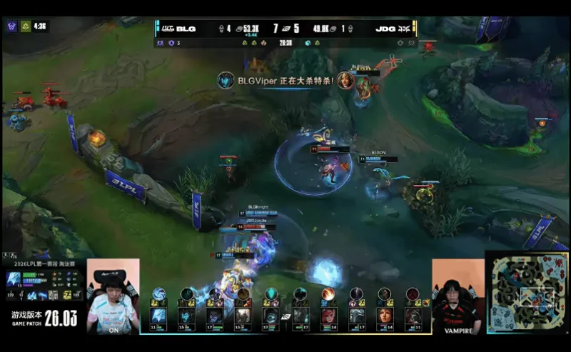 2分钟,维克托中路单杀塞拉斯,BLG下路线杀轮子妈